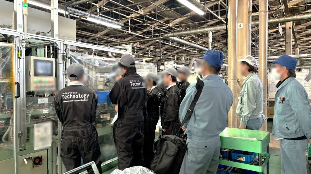 今回の企業見学は、学生の企業理解・総社地域への就職の一助となることを目的に、岡山商科大学附属高等学校の工業技術コース2年生を対象に開催されました。学生は3班に分かれ、それぞれ3社の企業を見学し、地域企業への理解を深める時間となりました。