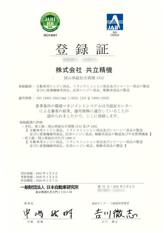 ISO14001の更新審査が実施され、各部署・各従業員の協力のおかげで、今回も無事に更新の承認をいただくことができました。ISO14001とは環境マネジメントに関する国際規格のことで、当社は2015年に取得いたしました。